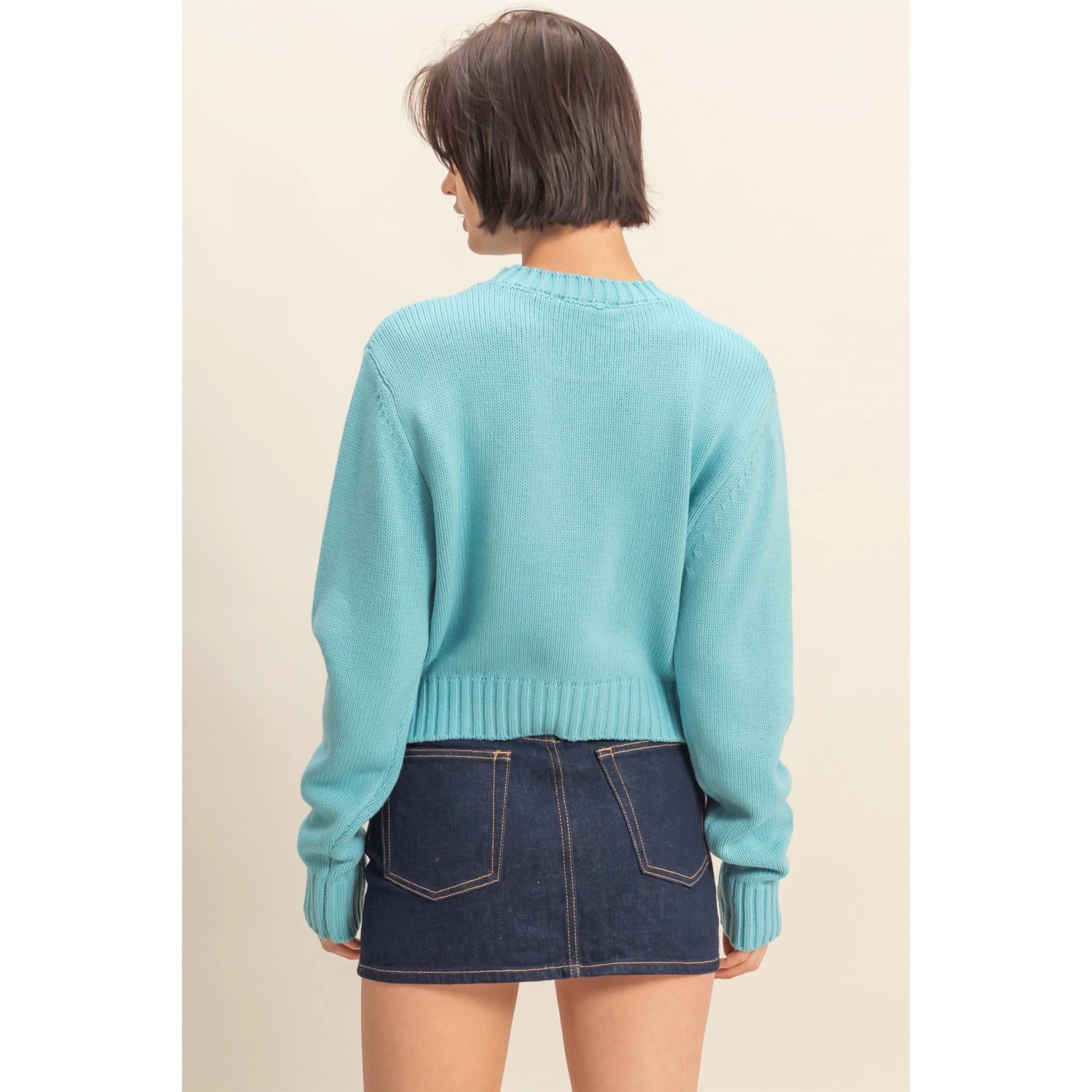 Add A Touch Of Cozy Charm To Your Look With This Cropped Knit Sweater. Featuring A Classic Crew Neckline And Long Sleeves, This Sweater Is Crafted From A Warm, Soft Knit Fabric. The Cropped Length Makes It Perfect For Layering Over High-Waisted Jeans Or Skirts, While The Ribbed Details At The Hem And Cuffs Provide A Snug, Comfortable Fit.