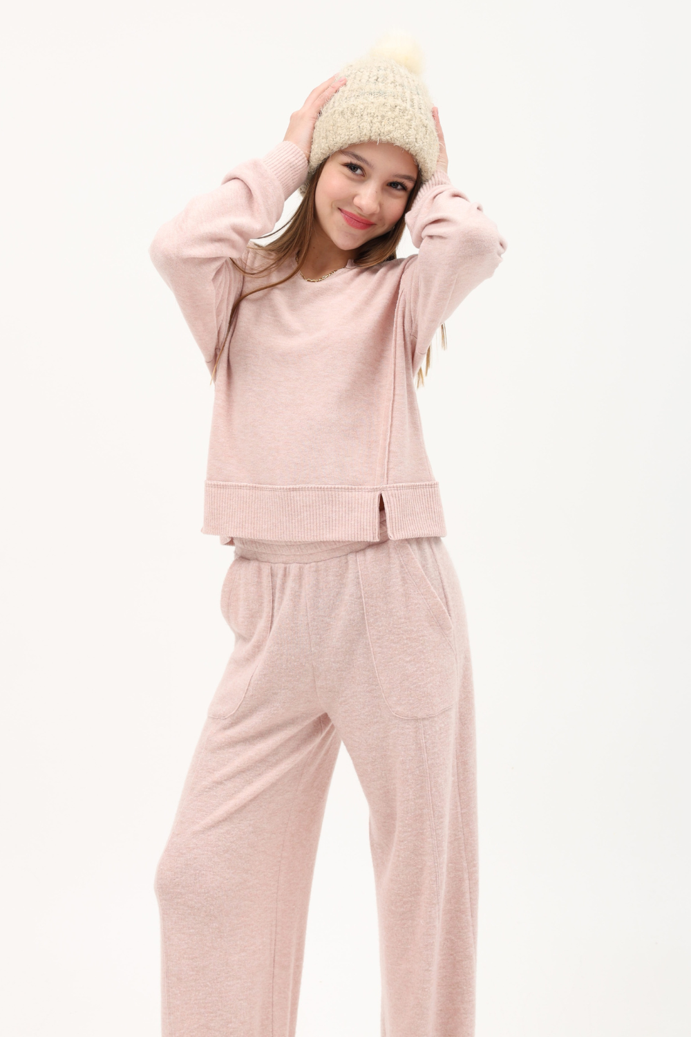 Hacci Jersey Cropped Split Neck Tunic By TENLY