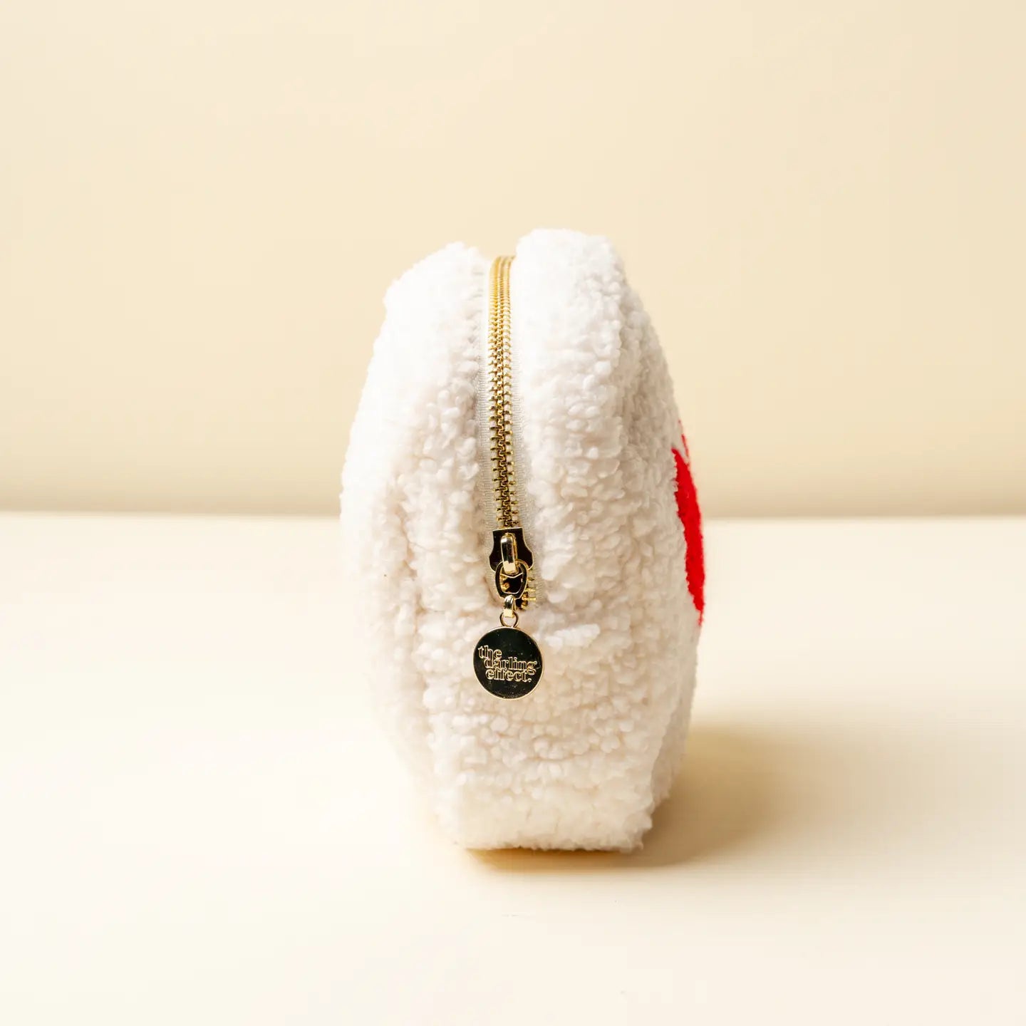 Add a cozy and functional accessory to your collection with our Square Teddy Pouches. Made from soft sherpa fabric, these pouches feature a wipeable lining for easy maintenance and gold zippers for a touch of elegance. The medium square size is perfect for keeping smaller essentials organized and it pairs effortlessly with our rectangle or circle pouches.