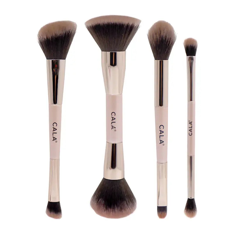 Golden Touch 4 pcs Makeup Brush Set in Collectors Tin. Offers a curated collection of essential brushes housed in a collectible pink metal tin. Designed for flawless application, each brush features ultra-soft bristles and a sleek, metallic finish. The set includes dedicated tools for contouring, buffing and powder application, blush and concealer placement, and precise eyeshadow blending and packing. Presented with a decorative pink bow and holiday charm, this set delivers both performance and gift-ready appeal—ideal for achieving seamless, professional-quality makeup looks