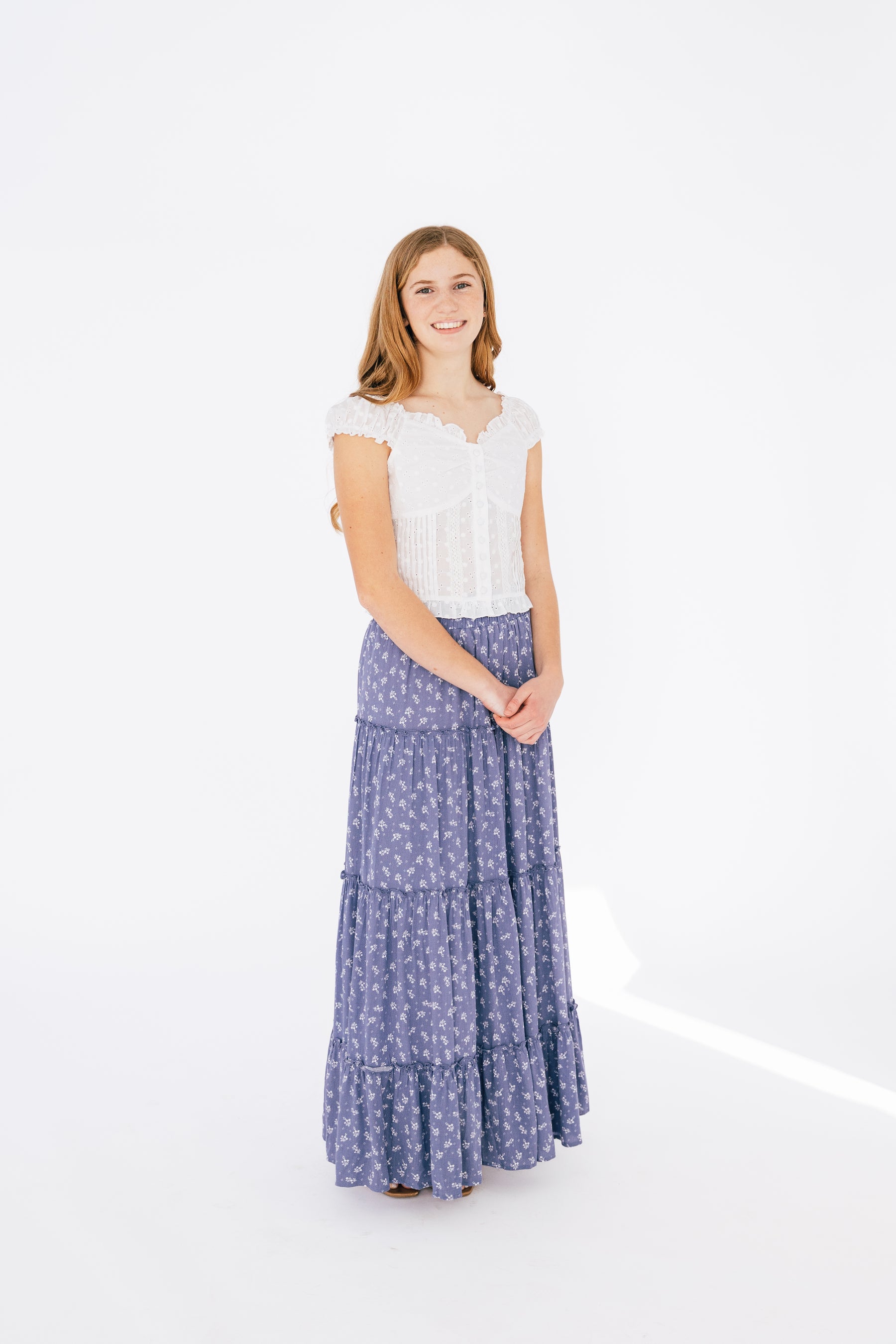 Twirl into fashion with the Girls Poppy Skirt in Blue Blossom by Katie J NYC. This flowing maxi skirt features a charming blue floral print that captures the essence of the season, while the adjustable drawstring waist ensures a comfortable, custom fit for growing tweens. Versatile and effortless, it's perfect for Easter celebrations, beach days, summer adventures, or everyday wear. Lightweight and graceful, this skirt transitions seamlessly from casual outings to special occasions, making it an essential addition to any girls wardrobe.