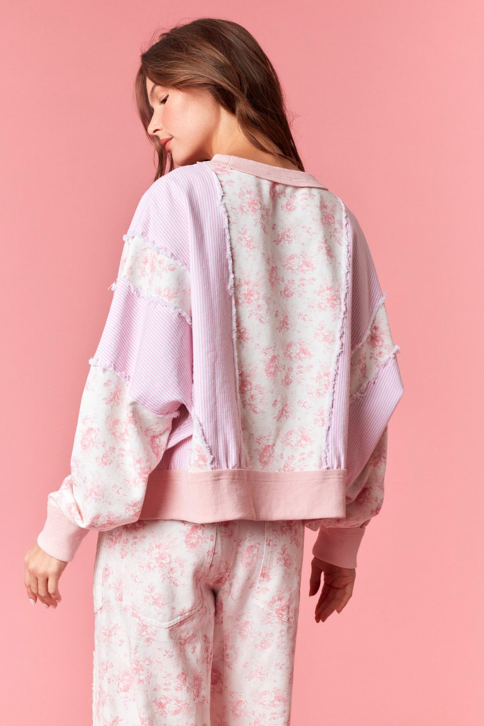 Floral Print Patchwork Pullover By Peach Love California – Ruth and Naomi