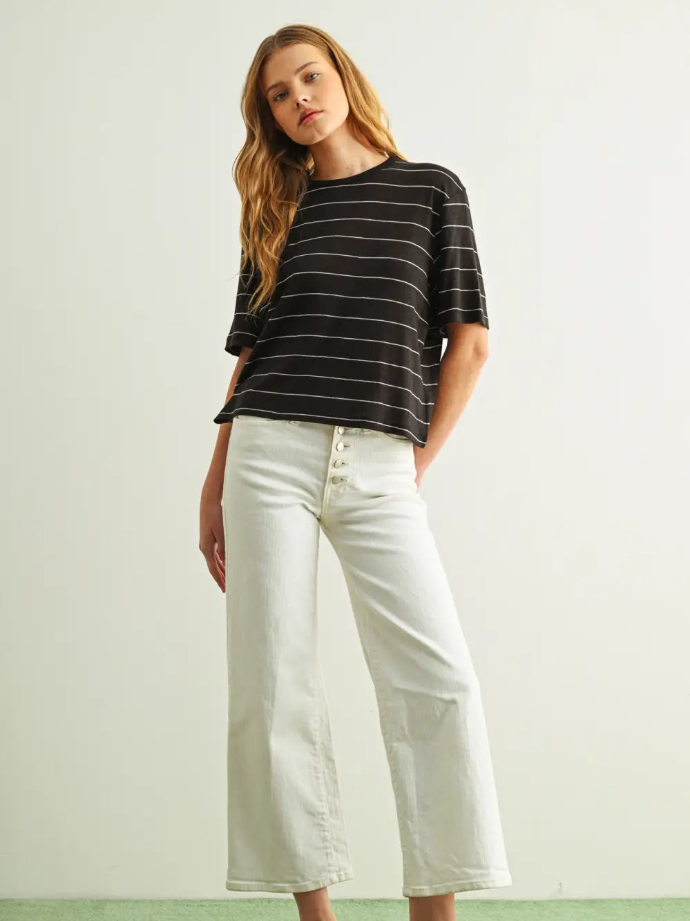 Effortlessly chic and undeniably comfortable, the Cammy Stripe Linen Top pairs timeless striped detailing with a generous fit that moves with you. Crafted for versatility, it's the perfect layering piece or standalone statement—dress it down with your favorite jeans for casual ease, or pair it with shorts for warm-weather style. Breathable linen keeps you cool while the relaxed silhouette flatters every frame.