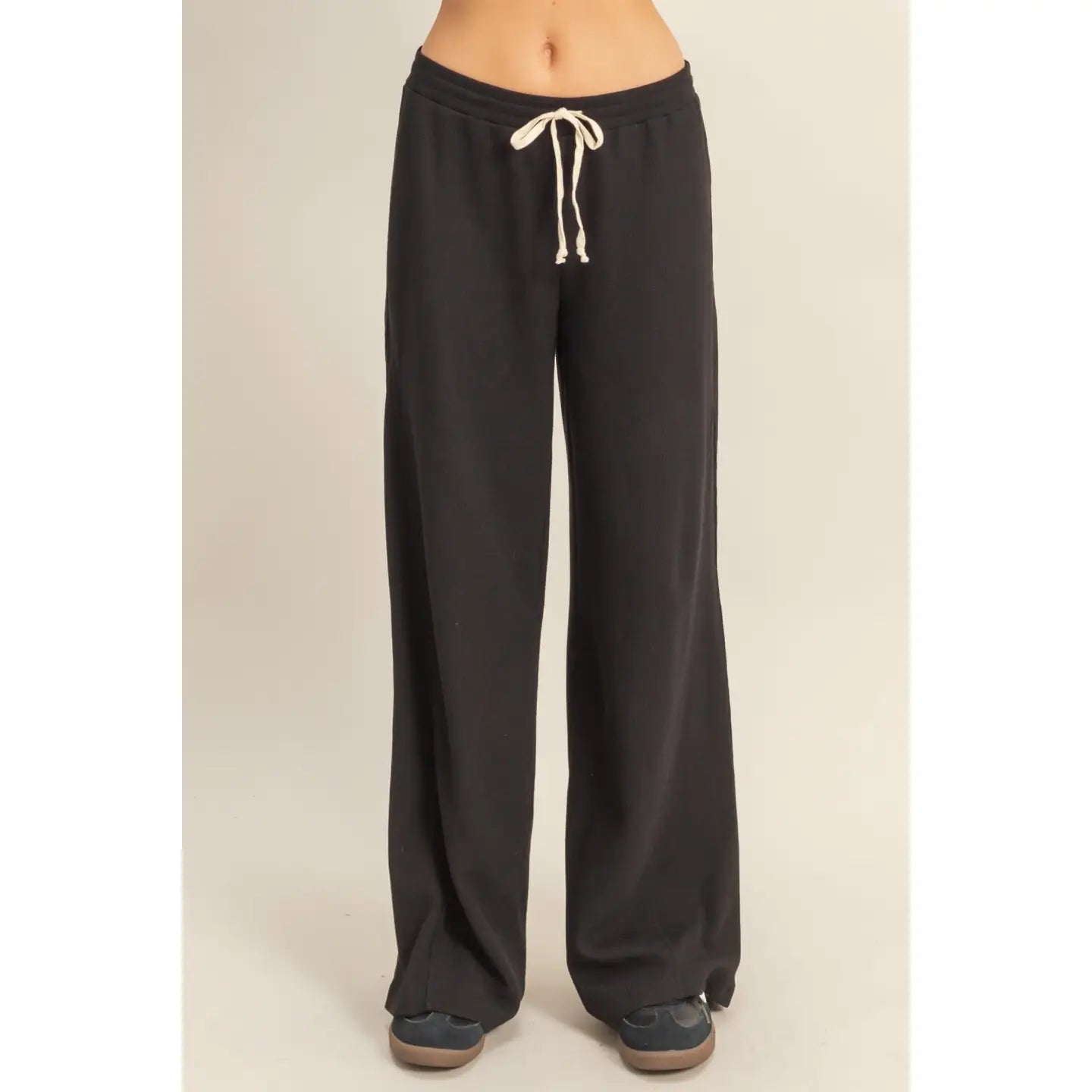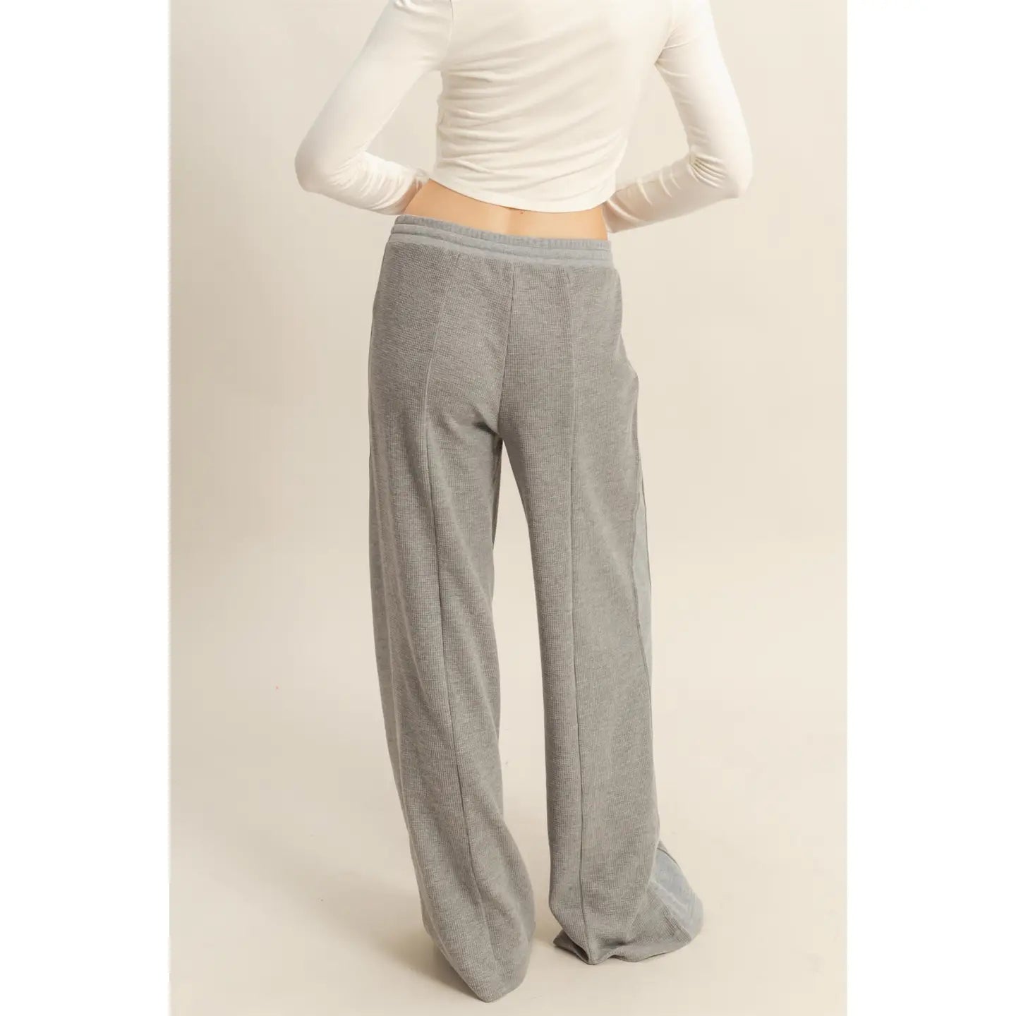 Elevate Your Wardrobe Essentials With These Waffled Knit Pants, Perfectly Balancing Comfort With Effortless Style. The Silhouette Boasts A Relaxed Fit With A Fluid Drape That Flatters While Maximizing Movement, Ideal For Both A Casual Day Out Or A Cozy Evening At Home. Highlighted By Their Distinctive White Contrasting Drawstring, They Ensure Both A Secure And Stylish Fit.