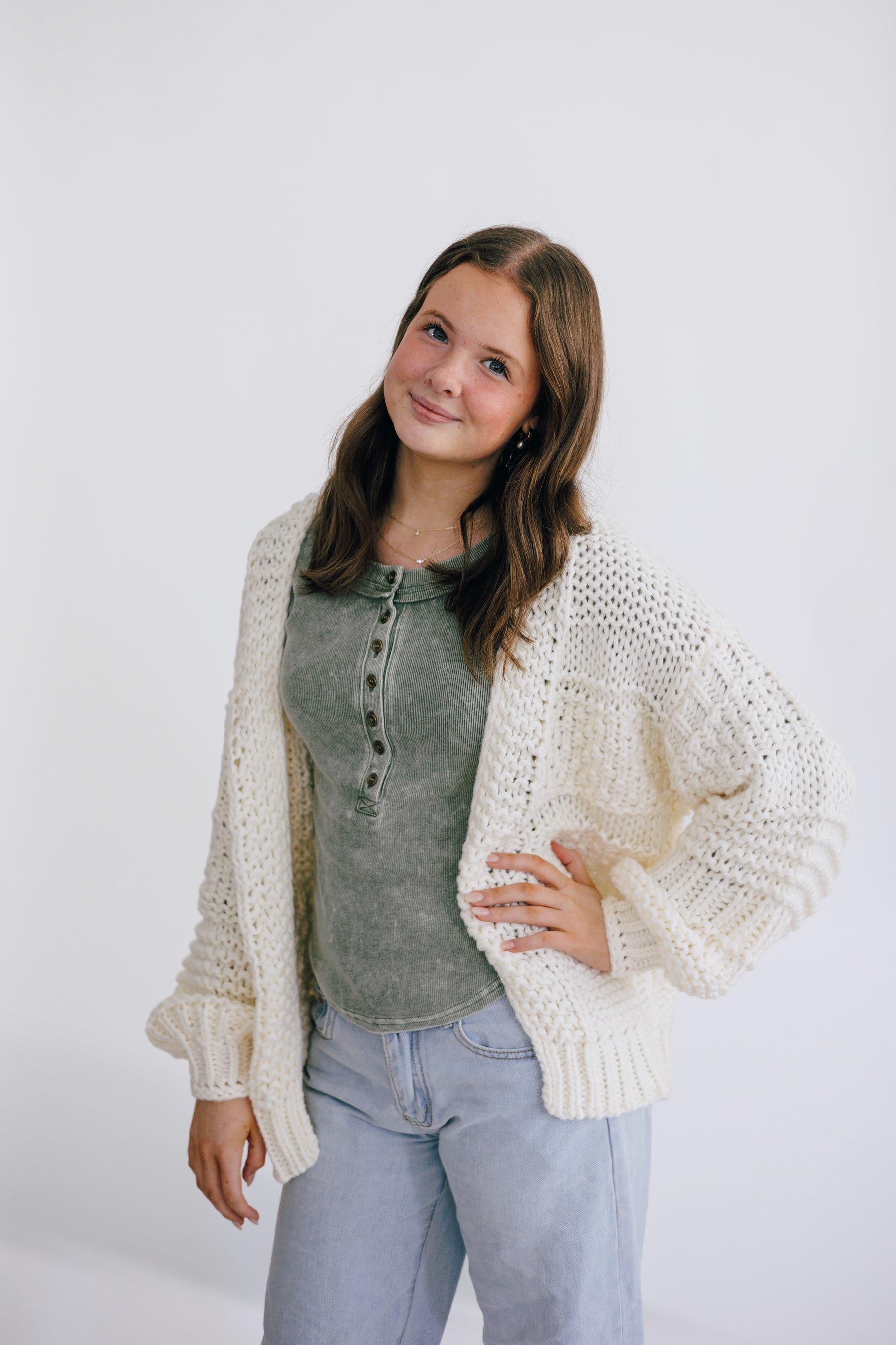 Wrap yourself in warmth and style with the Luna Open Front Chunky Cardigan. Crafted from soft, cozy fabric, this chunky sweater offers exceptional comfort and effortless layering. Its open front design adds a relaxed, versatile touch perfect for casual outings or cozy nights in. Elevate your wardrobe with this must-have piece that combines snug softness with timeless appeal.