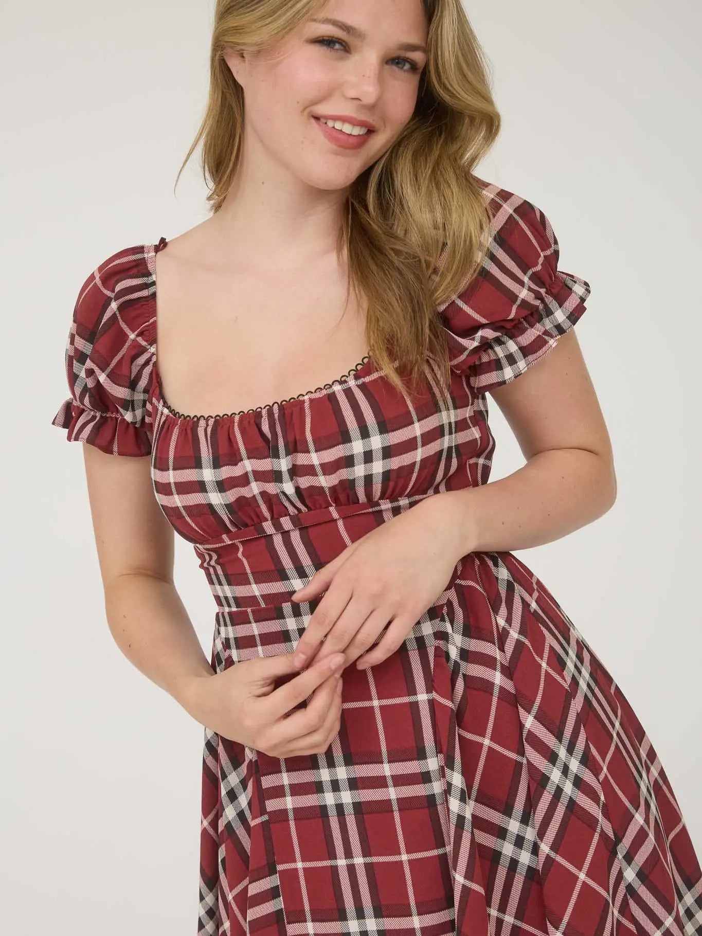 The Whitney Plaid Mini Dress features a flattering scoop neckline and charming short puff sleeves for a playful touch. Its A-line silhouette combined with back smocking ensures a comfortable fit that moves with you. Fully lined and finished with a classic plaid print, this mini dress blends timeless style with modern comfort—perfect for any occasion where you want to stand out effortlessly.