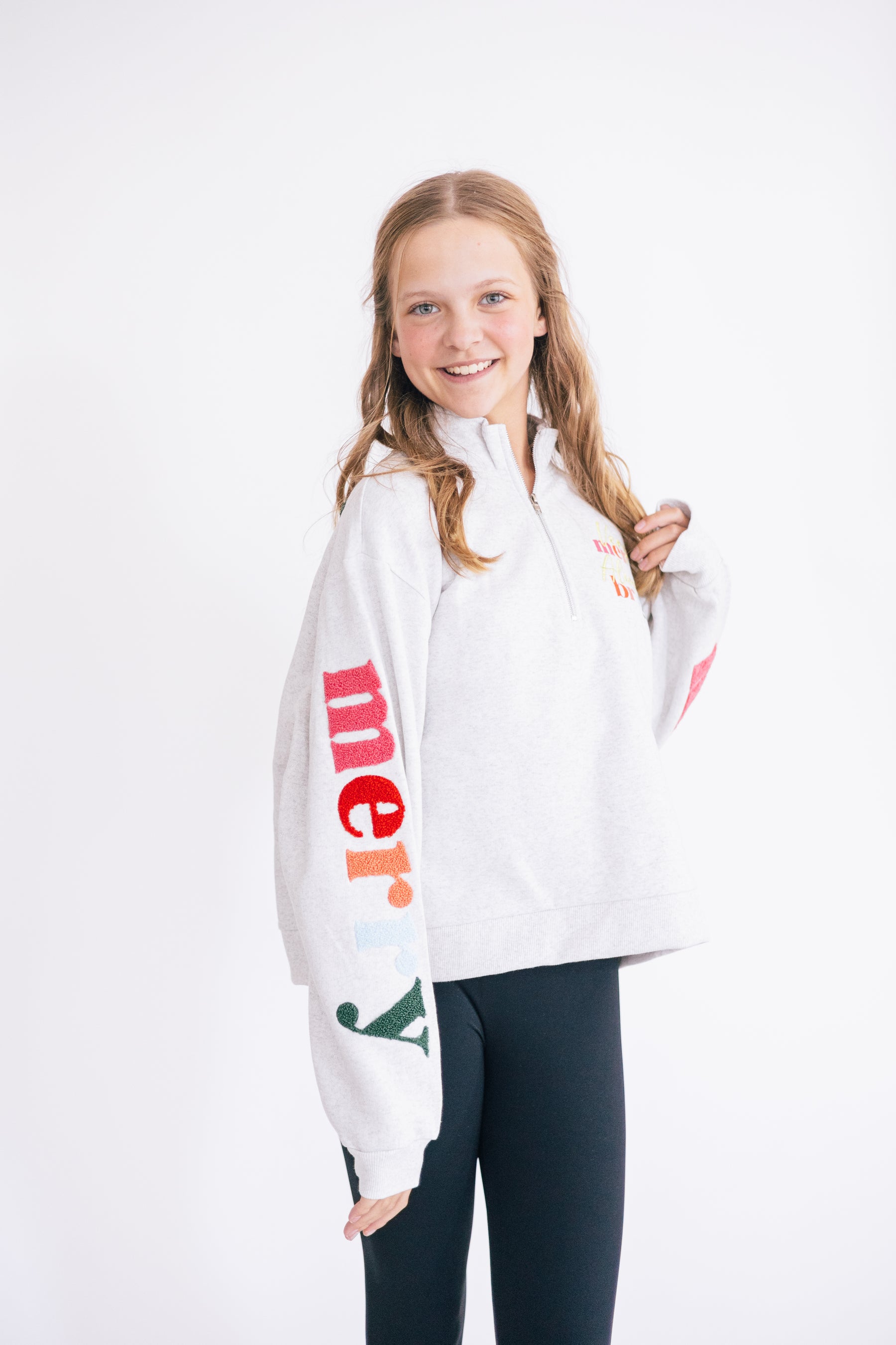 Embrace the festive spirit year-round with the Very Merry Fully Embroidered Sweatshirt by Paper Flower. Featuring intricate embroidery on the front, back, and arms, this cozy sweatshirt brings holiday charm to your everyday wardrobe. Designed for comfort and style, it’s perfect for daily wear, keeping you warm while spreading Christmas cheer wherever you go.